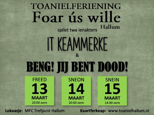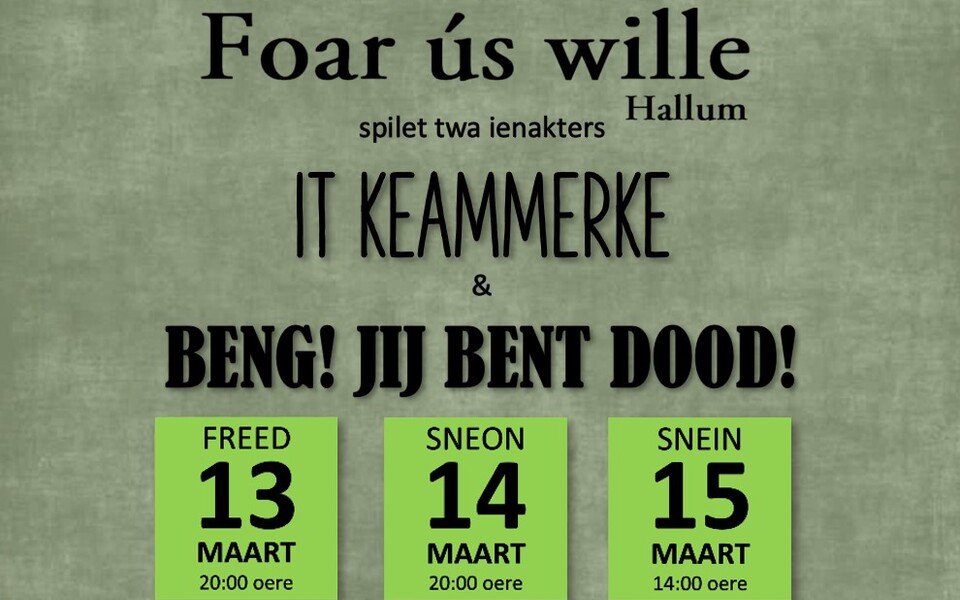 De spilers en regisseur binne fol entûsjasme dwaande om fan beide Fryske toanielstikken in bysûndere en fermaaklike jûn / middei te meitsjen.