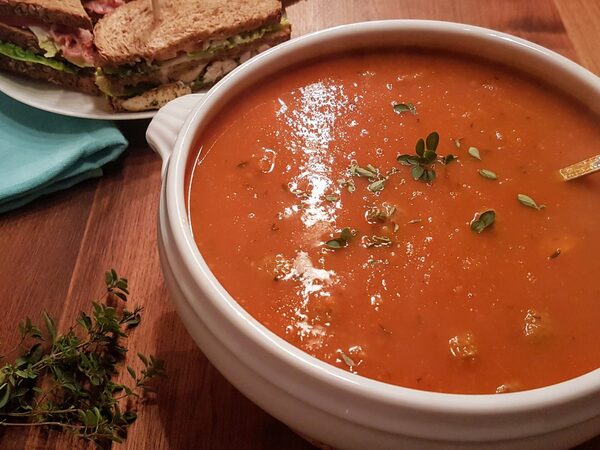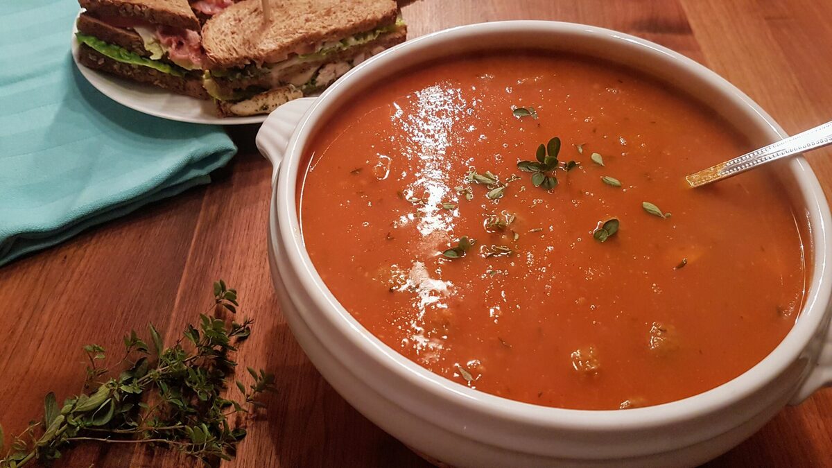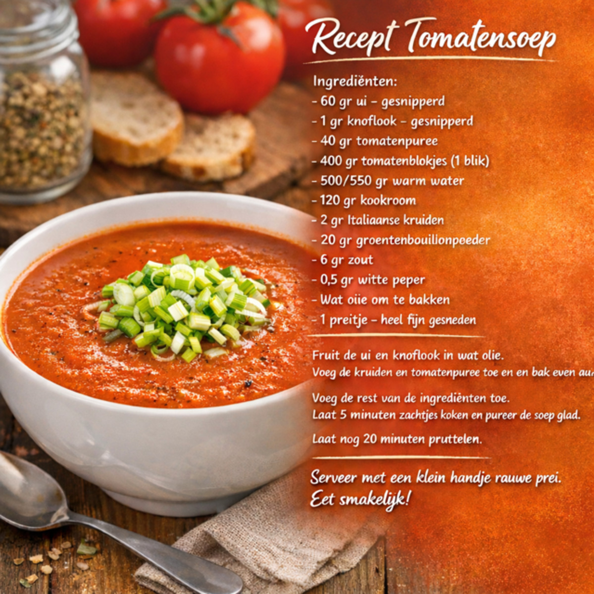 Laat 5 minuten zachtjes koken en pureer de soep glad.
