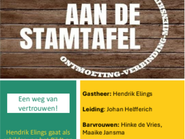 bijbelse reflectie geven op het onderwerp. De volgende stamtafels worden gehouden op de woensdagen: