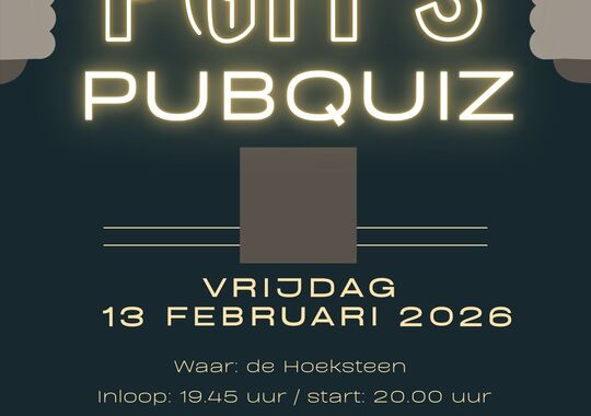 Op vrijdag 13 Februari organiseert de PGM een Pubquiz. Het wordt gehouden in de Hoeksteen. Inloop is vanaf 19:45 uur. Start Quiz is om 20:00 uur. Inleg is € 5,00 per persoon....