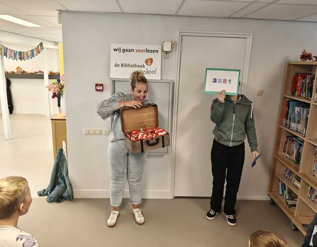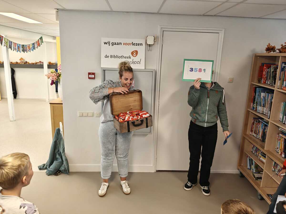 Om 8.20 uur verzamelden alle kinderen zich in de schoolbibliotheek. Daar las juf Alida een geheimzinnige brief voor, waarna een echte schatkist werd ontdekt. Maar… die ging natuurlijk niet zomaar open: eerst moest de code worden gekraakt!