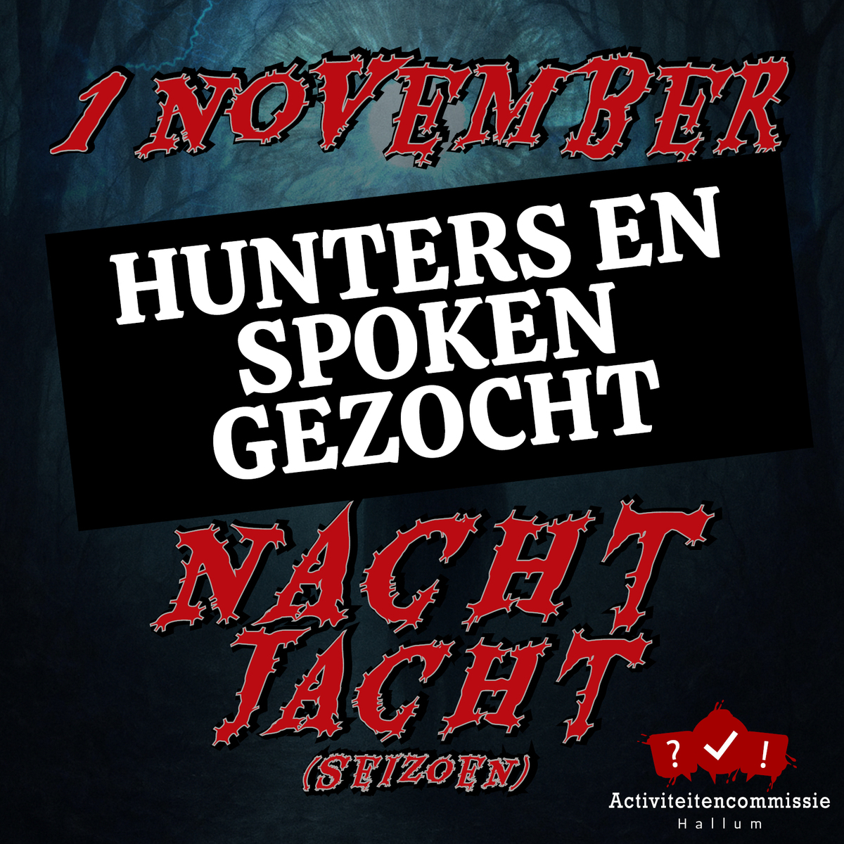Na het daverende succes van de Zeepkisten race, zijn we terug met een spectaculair evenement dat je niet wilt missen: De Nacht Jacht Een duistere samensmelting van een spokentocht en het jachtseizoen… In teams doorkruis je de straten van Hallum, op zoek naar aanwijzingen om het mysterie te ontrafelen.