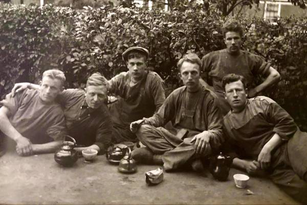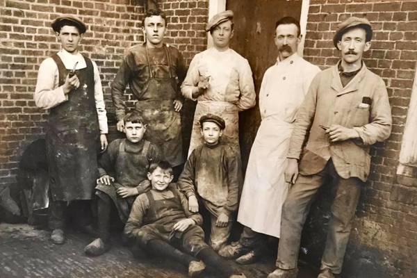 Oude foto's personeel van Hellema's koekfabriek