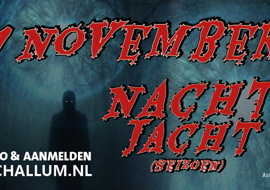 Durf jij het aan? De Nacht Jacht is terug! Een spannende mix van een spokentocht en het jachtseizoen. In teams doorkruis je de straten van Hallum, op zoek naar aanwijzingen om het mysterie te...